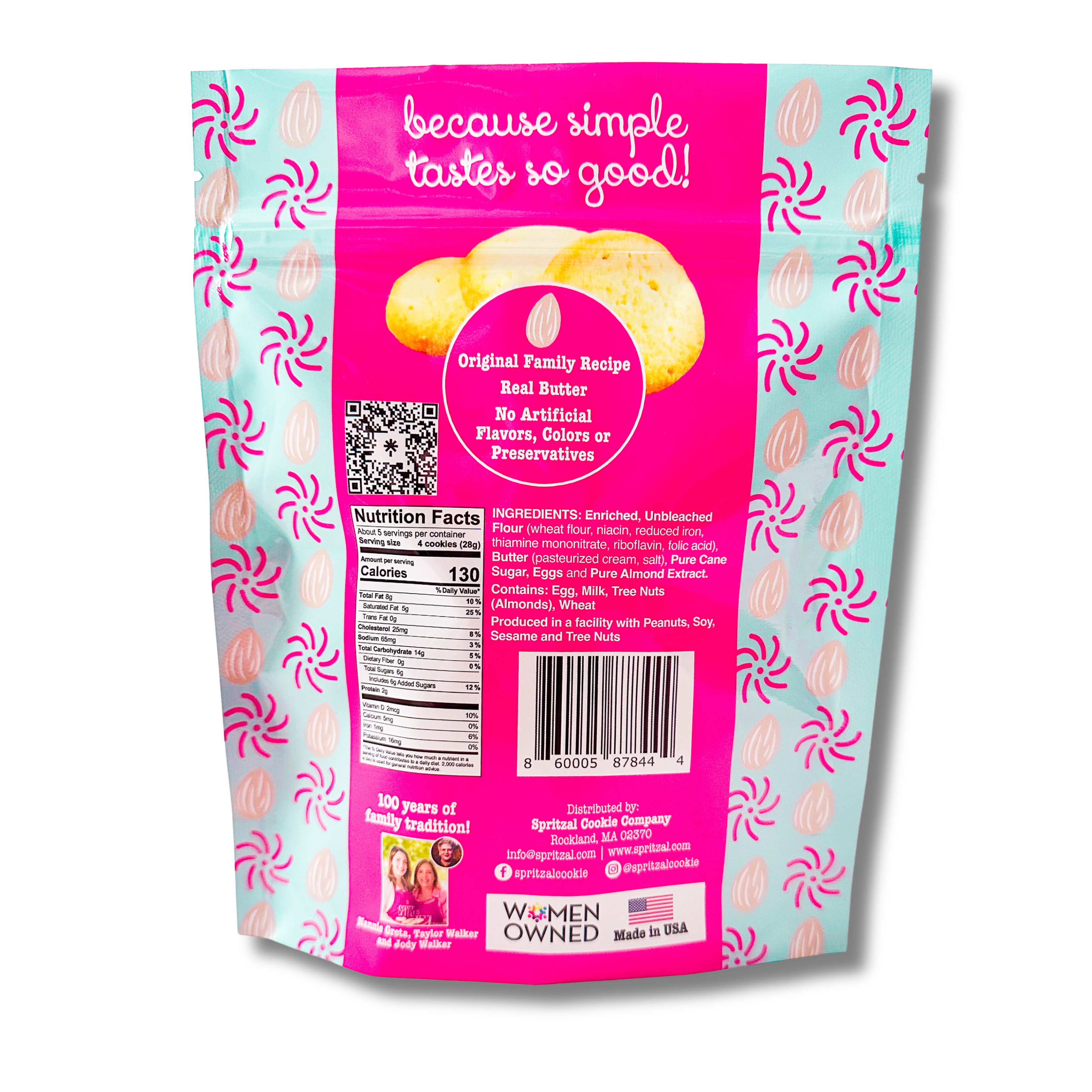 Spritzal Deliciously Almond Shortbread Cookie Bites are lovingly created by a women-owned, mother-daughter team dedicated to honoring tradition while delivering high-quality, innovative flavors.